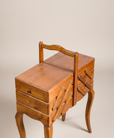 Recupera el encanto de la artesanía con este costurero antiguo, una pieza que no solo organiza tus hilos y agujas, sino que también cuenta una historia en cada veta de su madera.