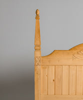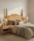 Este cabecero de madera natural con talla semicircular, de diseño artesanal y acabado claro se convierte en el centro de un dormitorio sereno, donde la calidez de la madera y la sencillez contemporánea se encuentran en perfecto equilibrio.