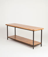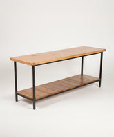 Esta mesa consola de estilo industrial es una pieza que combina la calidez de la madera con la robustez del metal, creando un mueble funcional y con estilo. Su diseño sencillo y lineal la hace ideal para cualquier espacio que busque un toque moderno y práctico.