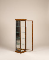 Esta vitrina expositora francesa es la pieza ideal para coleccionistas. Con un elegante acabado en raíz de nogal y un diseño vertical, es el mueble expositor perfecto para exhibir tus objetos más valiosos y añadir un toque de lujo y sofisticación a cualquier rincón.