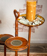 Esta encantador macetero de madera de tres niveles es una pieza que combina funcionalidad y un toque romántico. Su diseño con tres bandejas escalonadas, la madera de tonos cálidos y el detalle del asa en forma de corazón la convierten en un complemento ideal para cualquier rincón del hogar