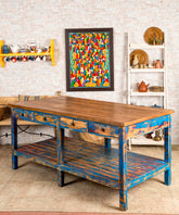 - Tudela es una pieza que en sus orígenes cumplió su función como mesa de trabajo industrial y que hoy día, puede convertirse en la clave del éxito de tu decoración.