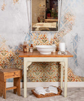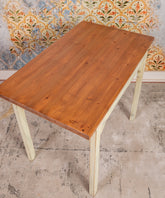- Esta mesa auxiliar antigua de madera patinada en beige es el complemento perfecto para cualquier espacio.