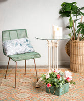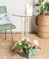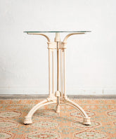 - Con su pie de hierro beige y tapa de cristal, añadirá un toque de estilo a cualquier habitación.