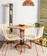 Esta mesa de estilo industrial combina a la perfección la calidez de la madera natural con la robustez del hierro fundido, creando una pieza llena de carácter y funcionalidad.