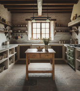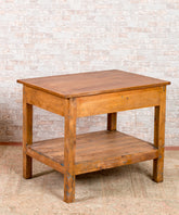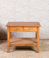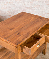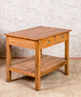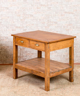 Esta robusta mesa de madera con cajones y estante es una pieza que combina a la perfección funcionalidad y un estilo industrial. Ideal para cocinas, comedores o espacios de trabajo que buscan un toque campestre y acogedor.