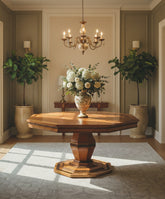 Esta mesa de comedor octogonal de roble es una pieza imponente que se convertirá en el centro de todas las miradas. Su diseño elegante y su base geométrica la convierten en un mueble funcional y escultural, ideal para un comedor con mucho estilo o un gran recibidor.