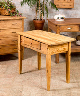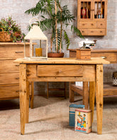 Esta mesa de madera maciza es una pieza sencilla y funcional que aportará un toque rústico y acogedor a tu hogar. Su diseño simple y robusto, junto con el acabado natural de la madera, la hacen ideal para cocinas, comedores o espacios de trabajo que buscan un estilo campestre.