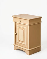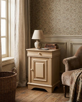 Imagina esta mesita de noche como ese pequeño refugio junto a tu cama, un compañero silencioso que te espera cada noche. Con un diseño que bebe de la sencillez y la calidez de lo clásico, ha sido restaurada con mimo para lucir un suave tono crema, casi como un abrazo visual. Su forma compacta esconde un cajón superior y una puerta inferior que se abre a un espacio práctico, perfecto para esos objetos que nos gusta tener a mano pero fuera de la vista. Las molduras sutiles y su base sólida le otorgan un aire de robustez amable, lista para integrarse con naturalidad y sumar ese punto de orden y belleza tranquila en cualquier dormitorio o rincón con encanto.