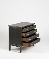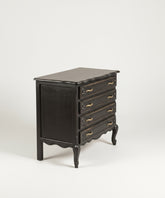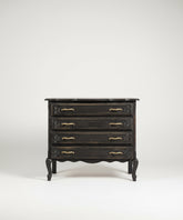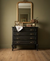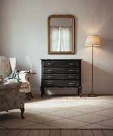 Añade un toque de elegancia atemporal y misterio a tu hogar con esta cómoda patinada en color negro Su silueta clásica y su profundo acabado en negro decapado la convierten en una pieza con alma, capaz de contar historias en cualquier rincón.
