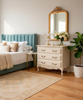Ideal para un dormitorio o un salón, esta cómoda no solo es funcional, sino que infunde una atmósfera de calma y distinción, un guiño a la belleza atemporal de lo clásico.