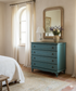 El vibrante color azul turquesa con el acabado decapé que le da profundidad.