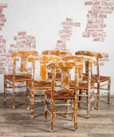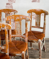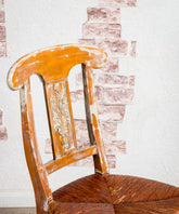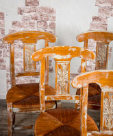 Este conjunto de sillas rústicas de madera combinan a la perfección la rusticidad del diseño con la calidez de los materiales naturales. Su asiento de anea, el respaldo tallado y el acabado decapado le dan un aspecto antiguo y lleno de encanto, ideal para comedores, cocinas o cualquier espacio que busque un toque tradicional.