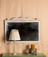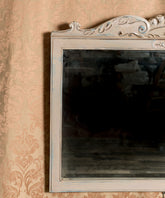 Este elegante espejo vintage es una pieza que aportará un toque de distinción y personalidad a tu hogar. Su marco con detalles ornamentales y su acabado decapado en blanco le dan un aspecto envejecido y romántico, ideal para decoraciones clásicas o shabby chic.
