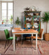 - Con su estructura patinada en blanco decapado y su tapa en color de madera natural, esta mesa es un ejemplo de versatilidad y encanto atemporal.
