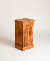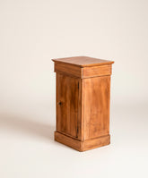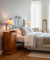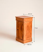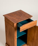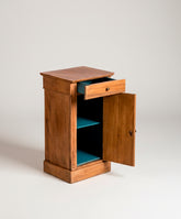 Por fuera, esta mesita antigua de noche es un maravilloso ejemplo de la elegancia sobria y atemporal del estilo Luis Felipe: una estructura de líneas puras y honestas, realizada en noble madera de nogal, con una cálida pátina que solo el tiempo puede otorgar. Es una pieza que transmite calma, solidez y la belleza de la ebanistería clásica. Pero esta mesita guarda un secreto. Al abrir su cajón o su puerta, se revela un inesperado y vibrante interior en azul petróleo, un audaz contrapunto contemporáneo que dialoga con la tradición. Es la pieza perfecta para quienes aman los clásicos pero buscan un guiño de personalidad y diseño que la haga absolutamente única.