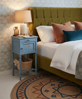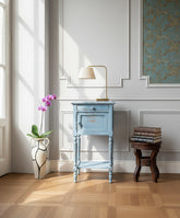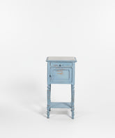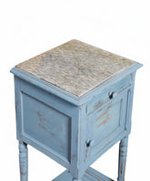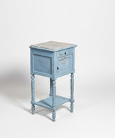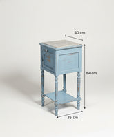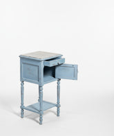 Añade un toque de encanto provenzal a tu dormitorio con nuestra mesita de noche 'Ciel'. Fabricada en madera maciza color azul desgastada y con una elegante tapa de mármol.
