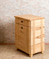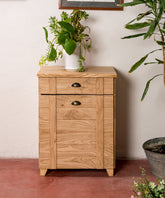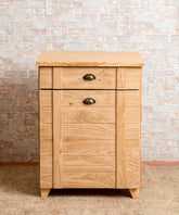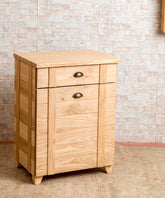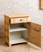 Este mueble auxiliar de madera maciza es una pieza que combina la belleza natural de la madera con un diseño sencillo y funcional. Con un cajon para almacenamiento y un compartimento con puerta, es ideal para añadir un toque cálido y práctico a cualquier espacio.