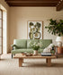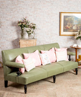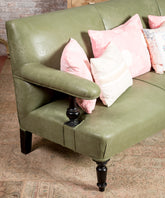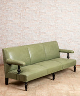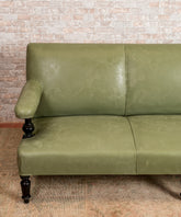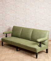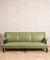 Dale un toque vintage a tu salón con este sofá de estilo clásico tapizado en verde inglés. Su diseño atemporal, con líneas rectas y reposabrazos cilíndricos, se adapta a una variedad de estilos decorativos, desde lo tradicional hasta lo contemporáneo.