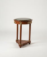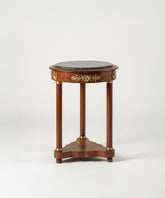 Sumérgete en la grandeza del estilo Imperio con esta espléndida mesa auxiliar antigua, una pieza que encarna la elegancia y la proporción de la época.