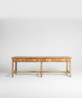 Esta imponente mesa de trabajo antigua, con su gran tamaño y sus numerosos cajones, es una pieza ideal para quienes buscan un espacio de trabajo amplio y organizado con un toque de historia. Su estructura de madera maciza y su acabado decapado le dan un carácter robusto y auténtico.
