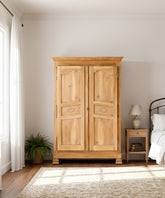 Este imponente armario de nogal francés es la pieza central para tu dormitorio. Con un diseño clásico y rústico, ofrece un amplio almacenaje para tu ropa y añade un toque de elegancia y calidez a tu espacio con la belleza natural de la madera.