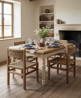 Imagina las largas sobremesas y las cenas familiares que podrías disfrutar alrededor de esta pieza llena de encanto. Esta mesa no es solo un mueble, es el corazón de un hogar que valora la calidez, la tradición y el estilo atemporal del campo francés.