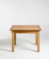 Imagina las largas sobremesas, las partidas de cartas o los desayunos tranquilos que podrías disfrutar alrededor de esta pieza. Esta mesa cuadrada de madera evoca la solidez de los muebles de antaño, diseñada no solo para servir, sino para reunir. Su presencia cálida y su estructura robusta transforman cualquier rincón en un espacio acogedor y funcional.