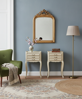 Introduce un soplo de romance y elegancia atemporal en tu dormitorio con el par de mesitas de noche 'Élise'. Su diseño, inspirado en el mobiliario francés del siglo XVIII, evoca la sofisticación de los apartamentos parisinos, aportando un toque de luz y carácter a tu espacio más personal.