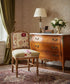 Una pieza de inspiración Luis XVI o Napoleón III, reinterpretada con un toque contemporáneo gracias al tejido decorativo floral.