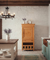 Su diseño tan versátil: La combinación de armario, cajón y botellero es increíblemente funcional. Es una solución de almacenaje muy completa y con una estética campestre irresistible.