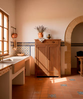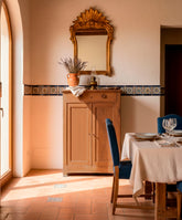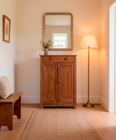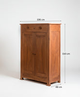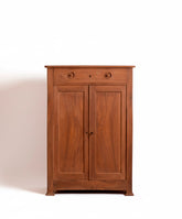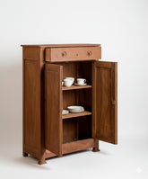 Hay muebles que transmiten una sensación inmediata de hogar, y este aparador alto es uno de ellos. Su diseño, de una elegancia sobria de principios de S. XX, apuesta por la belleza sincera de los materiales nobles. Realizado en madera de cerezo, su único adorno es la propia veta, que dibuja aguas preciosas sobre las puertas y el frente del cajón. Su estructura de líneas puras y rotundas ofrece una increíble capacidad de almacenaje, con un gran armario de doble puerta y un práctico cajón superior. Es una pieza que habla de permanencia y de vida familiar, el mueble perfecto para guardar la vajilla en un comedor o como despensero con alma en una cocina.
