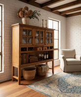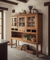 Este aparador de madera maciza añade un toque rústico y cálido a tu hogar. Perfecto para organizar vajilla y botellas, es el mueble de almacenaje que estabas buscando para dar vida a cualquier espacio.