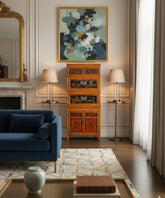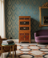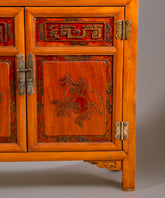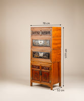 Un viaje a la China imperial en una sola pieza. Este cabinet apilable no es solo un mueble, es un archivo de historias narradas en madera tallada y lacada. Una presencia escultural que irradia la serenidad y el refinamiento del Lejano Oriente.