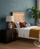 Descubre este cabecero individual de diseño artesanal en madera de cerezo. Una pieza única de inspiración japonesa para un dormitorio sereno y elegante.