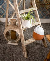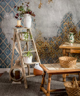 Add a touch of rustic charm and versatility to your home with this antique decorative wooden ladder. Its design, with wide steps and a light-toned, aged finish, evokes the functionality of yesteryear with a modern aesthetic. Use it as an original stand for plants, books, candles, or other decorative objects, adding height and dynamism to any space. Its unique character and natural patina make it a piece that adds personality and a nostalgic touch to your decor.