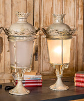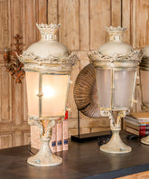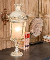 This antique wrought iron lantern is a charming and unique piece that combines rustic appeal with a touch of elegance.