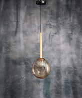 This ceiling lamp, with its minimalist design and contemporary aesthetic, is a piece that will transform any space with its ethereal presence. A smoked or amber glass sphere, suspended from a slender metal rod in a gold or brass tone, diffuses a soft, diffused light, creating an atmosphere of calm and sophistication. Its design, featuring clean lines and geometric shapes, adds a touch of modernity without sacrificing elegance. Perfect for illuminating a reading nook, a side table, or as an accent light in a hallway, this lamp is not just lighting, but a stylish statement that adds depth and a welcoming atmosphere.