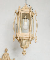 This set of vintage-style wall and pendant lanterns is a charming option for adding a romantic and classic touch to your home. Crafted from metal and finished in a creamy antique finish, these lanterns evoke the magic of bygone eras.