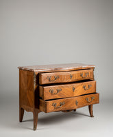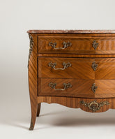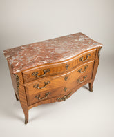 Su silueta curva, los tiradores de bronce y el mármol veteado hablan de otro tiempo: