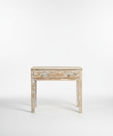This charming rustic solid wood table combines rustic warmth with a touch of vintage elegance. Its distressed gray finish gives it an aged, romantic look, perfect for adding a touch of personality to any space.