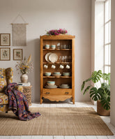 Esta librería de madera es la solución ideal para organizar tu salón o despacho con elegancia. Sus curvas únicas, la calidez de la madera natural y un práctico cajón las convierten en la pieza perfecta para libros y decoración.