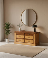 Sus dos tonos —miel y nogal oscuro— aportan carácter y equilibrio a cualquier espacio.