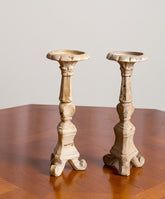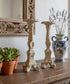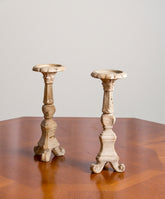 Añade un toque de encanto y estilo a tu decoración con esta pareja de portavelas. Su acabado desgastado y su diseño clásico los convierten en un accesorio decorativo perfecto para crear un ambiente acogedor y lleno de personalidad en cualquier rincón de tu casa.