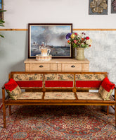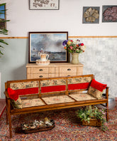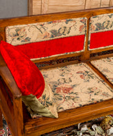 This antique wooden bench combines the elegance of its design with the comfort of its upholstery. The solid wood frame and floral upholstery give it a classic and cozy touch, perfect for decorating any space with a vintage feel.