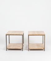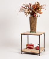 Add a touch of industrial style to your decor with this unique low side table. Made with a sturdy iron frame and a solid wood top, this table is perfect for any space.
