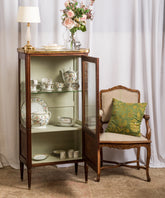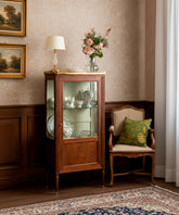 This showcase, with its unmistakable Louis XVI style, is a piece that radiates the sobriety and proportion of the neoclassical era.