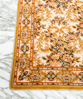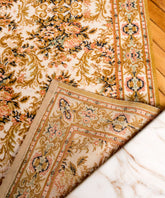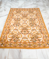 Esta alfombra vintage es una pieza que aportará calidez y un toque clásico a tu hogar. Su diseño floral en tonos dorados sobre un fondo crema crea un ambiente elegante y acogedor, perfecto para decorar salones, dormitorios o comedores.