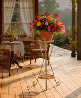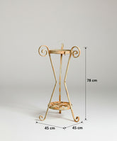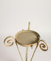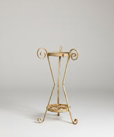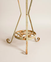Hay objetos que tienen la capacidad de crear un rincón mágico, y esta jardinera de pie es uno de ellos. Inspirada en los antiguos soportes para plantas de los invernaderos y jardines de antaño, está realizada en hierro forjado. Su mayor encanto reside en su pátina: una patina en un suave tono beige verdoso, bellamente desgastada por el tiempo, deja entrever un fondo color teja que le confiere un carácter y una autenticidad extraordinarios. Con sus volutas en las patas y su altura para exhibir tus plantas favoritas, esta pieza es un pedestal para la naturaleza, un toque de nostalgia y romanticismo para cualquier terraza, porche o rincón luminoso del hogar.