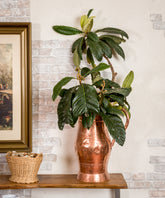 Añade un toque de calidez rústica a tu hogar con esta encantadora jarra de cobre. Su diseño clásico, con una silueta elegante y un brillo cálido, evoca la belleza de los objetos artesanales de antaño, añadiendo un toque de carácter a cualquier espacio. El cobre, con su pátina natural y textura martillada, refleja la luz de manera única, creando un punto focal que captura la atención y aporta un toque de distinción a la decoración.